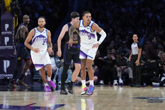 2、基昂特?喬治本賽季在爵士展現出強勁的進(jìn)攻爆發(fā)力,已成球隊重要得分點(diǎn)。他外線(xiàn)火力兇猛,三分投射精準且出手果斷,對陣公牛轟下33分。同時(shí)具備一定突破與傳球視野,能在進(jìn)攻端靈活切換得分與串聯(lián)角色。球風(fēng)敢打敢拼,關(guān)鍵回合不怯場(chǎng),未來(lái)潛力值得期待。今天對陣湖人,喬治3分不錯,22中12,命中5個(gè)3分,得到33分4籃板7助攻。